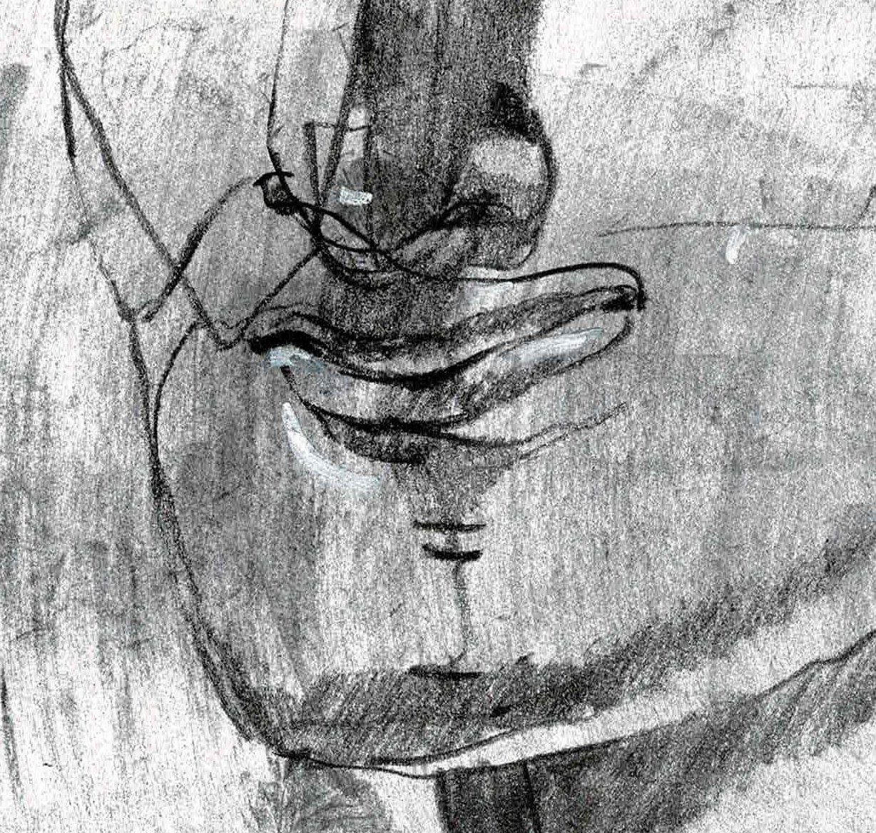 All drawings have been fixed with several layers of professional fixative, but they are still fragile in that one should not scrub the surface with their hand/ fingers. These drawings will be shipped in a rigid mailer with a cardboard backing inside a protective plastic sleeve. The paper used for this series is 100lb thick, 100 bright, acid-free paper.