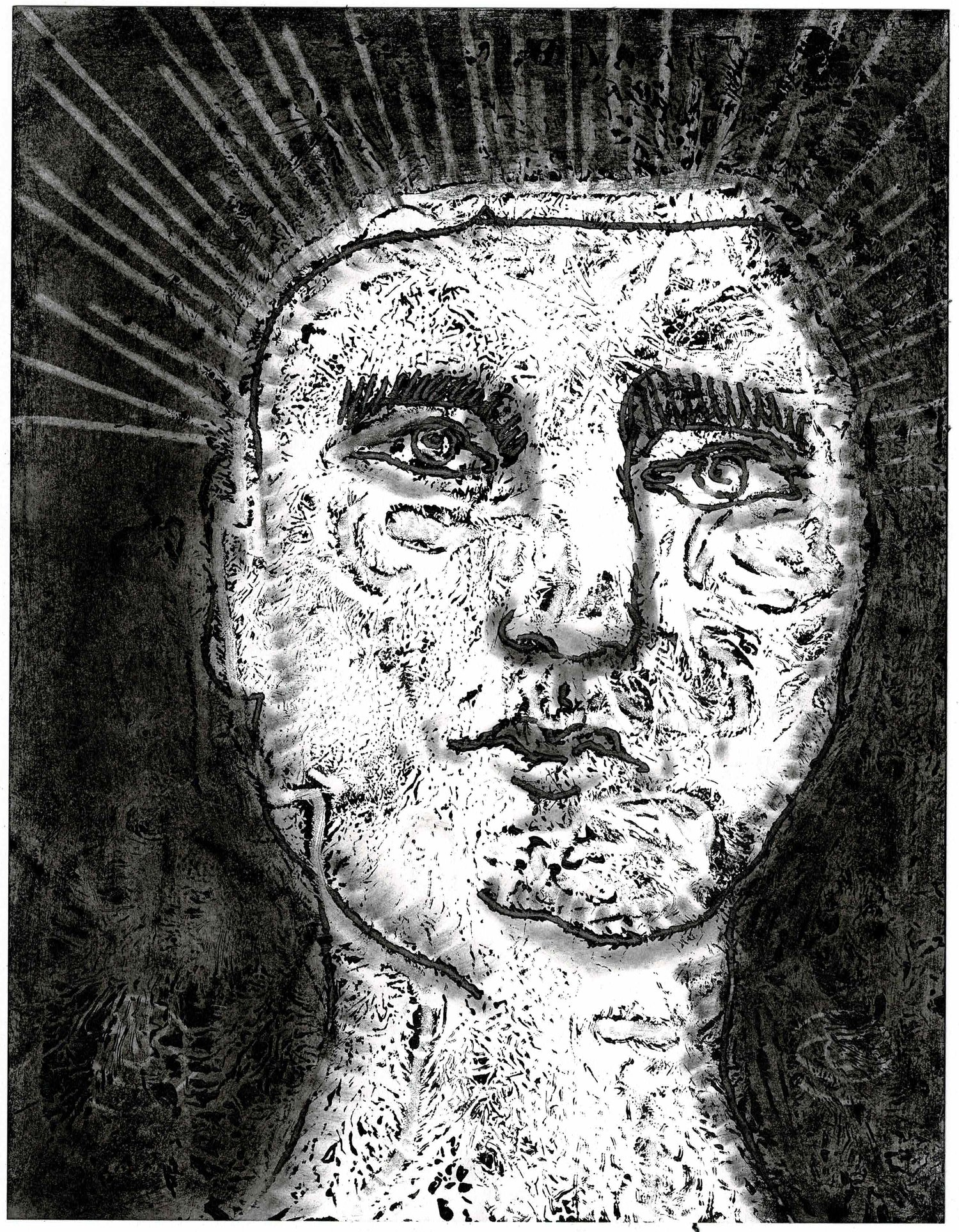 Challenging myself through the medium has been exciting by keeping certain parameters constant. All drawings depict heads and faces; so far, they are all vertical, black and white and 11 x 8.5 inches. Some are just graphite; others combine various mediums. Many are a combination of faces created through imagination and memory; some are inspired by Greek, Egyptian, and Roman classical sculptural heads, and others I have literally printed my face on the page. The drawings that don't excite me get cut up and collaged into other pictures. I am continuously thinking of light beams, glows, shadows, sparks, wind, fog, movement, and stillness and how all these different factors affect light.
