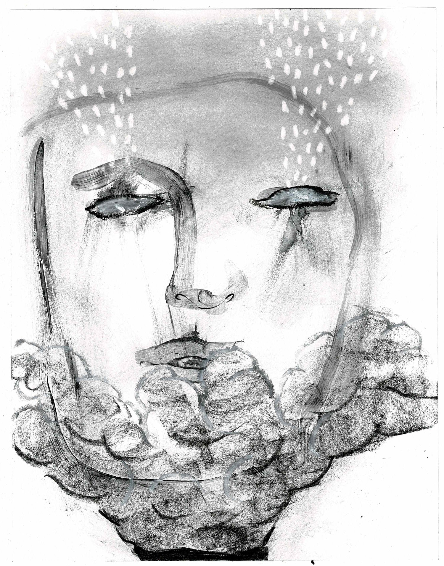 Challenging myself through the medium has been exciting by keeping certain parameters constant. All drawings depict heads and faces; so far, they are all vertical, black and white and 11 x 8.5 inches. Some are just graphite; others combine various mediums. Many are a combination of faces created through imagination and memory; some are inspired by Greek, Egyptian, and Roman classical sculptural heads, and others I have literally printed my face on the page. The drawings that don't excite me get cut up and collaged into other pictures. I am continuously thinking of light beams, glows, shadows, sparks, wind, fog, movement, and stillness and how all these different factors affect light.