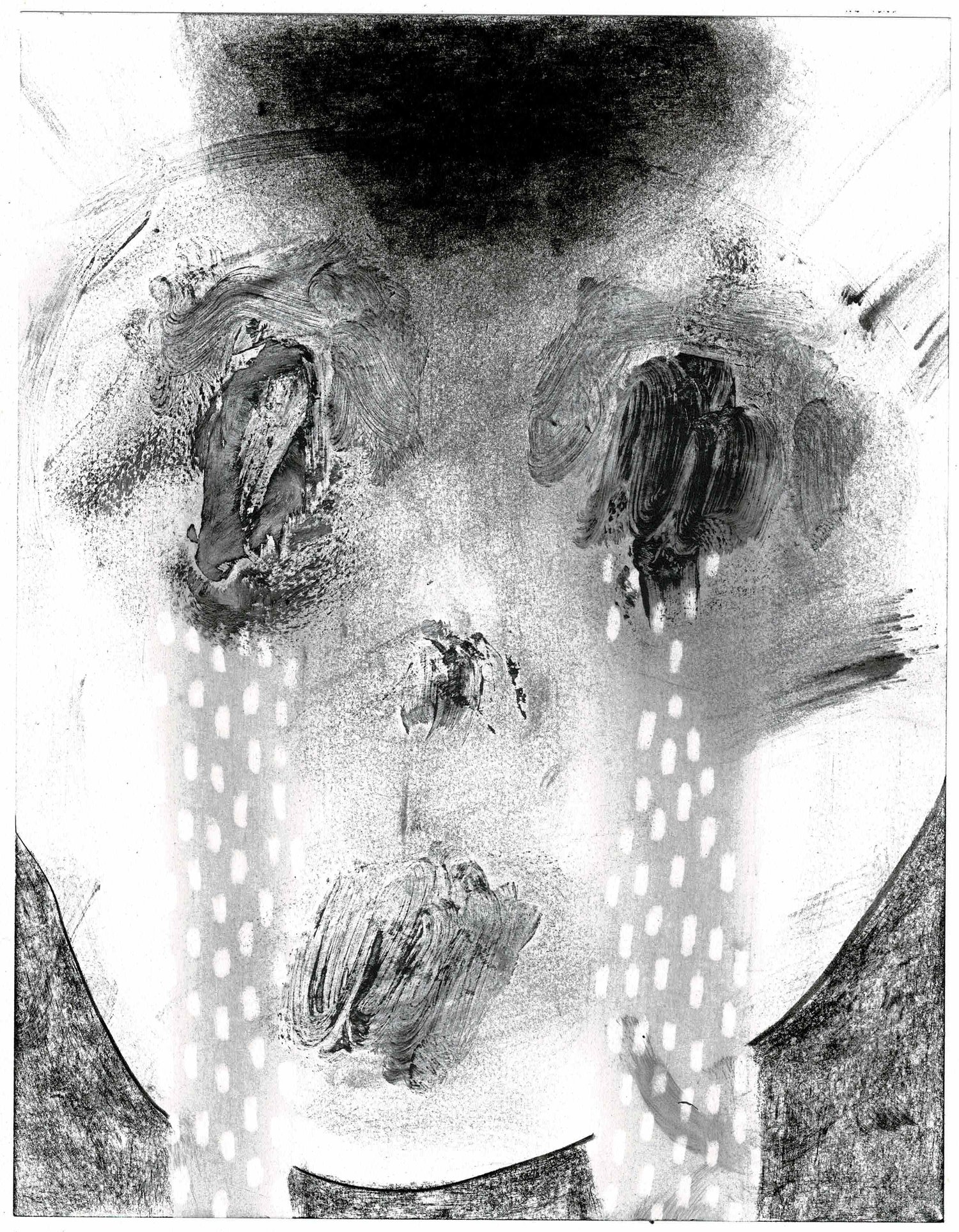 Challenging myself through the medium has been exciting by keeping certain parameters constant. All drawings depict heads and faces; so far, they are all vertical, black and white and 11 x 8.5 inches. Some are just graphite; others combine various mediums. Many are a combination of faces created through imagination and memory; some are inspired by Greek, Egyptian, and Roman classical sculptural heads, and others I have literally printed my face on the page. The drawings that don't excite me get cut up and collaged into other pictures. I am continuously thinking of light beams, glows, shadows, sparks, wind, fog, movement, and stillness and how all these different factors affect light.