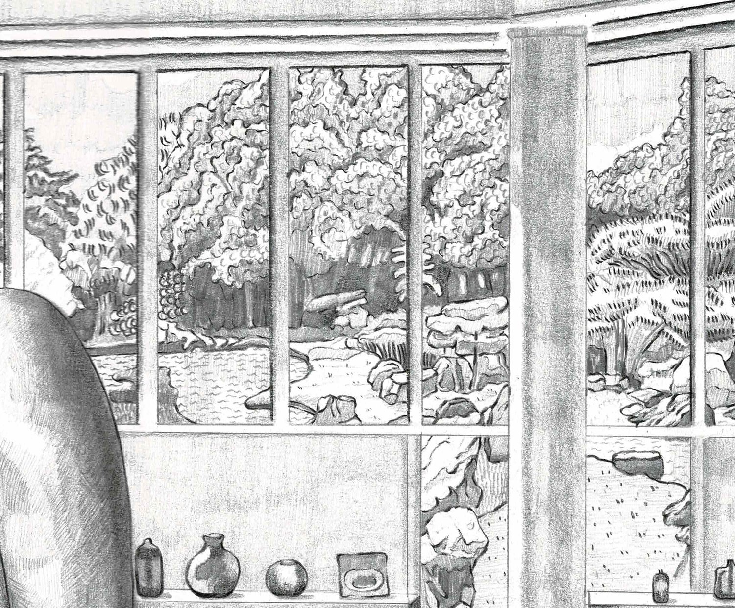 Dealing with a persistent virus has instigated a new direction in my work, with the central theme being Self Care. A single woman lives in isolation in each of my drawings and paintings. She inhabits wild environments and has developed a symbiotic relationship with the landscape. The female figures embody the wild woman archetype and reflect the landscape around them: arms open up like flowers, legs mirror the bends of the river, bodies twists like tree trunks. The repetition of natural elements, like leaves or waves, evokes a sense of abundant beauty and simultaneously remains on the verge of overflowing and consuming the figures.